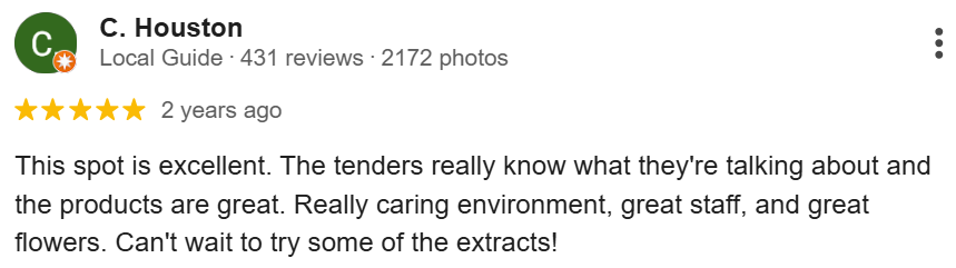 Our mission: to craft top-shelf cannabis using modern, respectful growing methods — and to guide each customer to the product that fits them best.